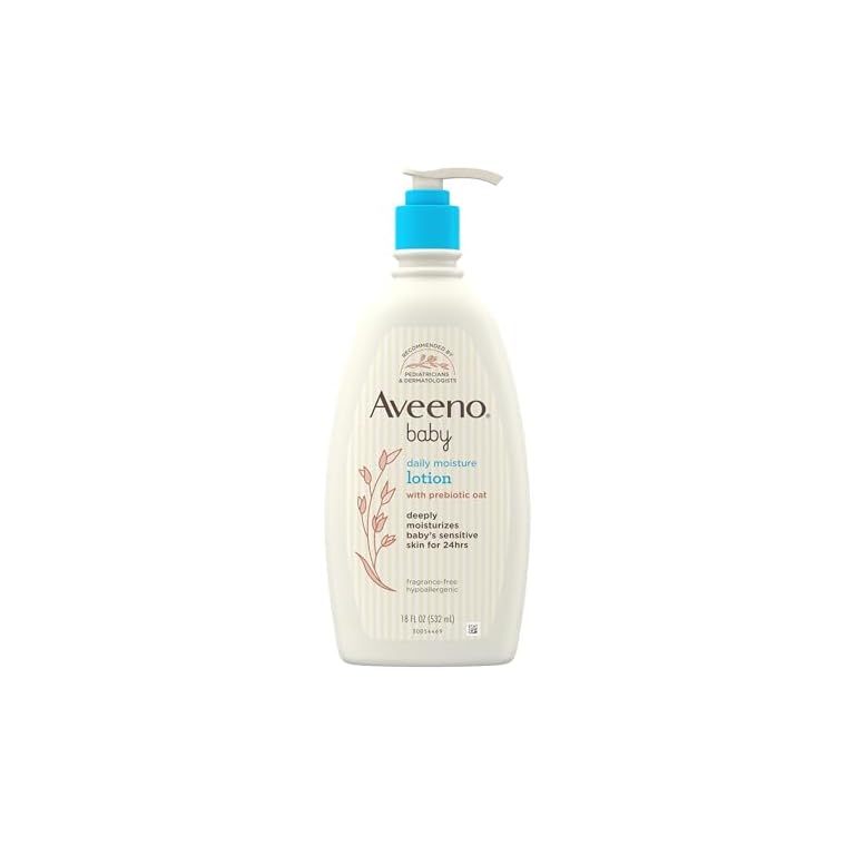 Aveeno Baby Daily Moisture Body Lotion for Sensitive Skin, Hypoallergenic Moisturizing Baby Lotion with Nourishing Oatmeal to Deeply Moisturize Baby’s Skin, Fragrance-Free, 18 fl. oz