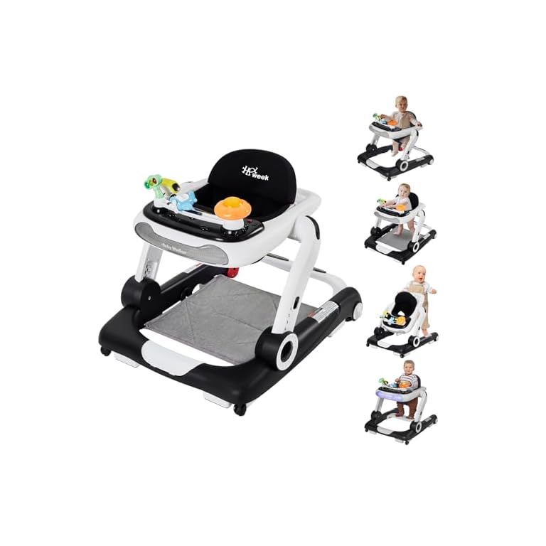 Baby Walker,4-Gear Height Adjustable Baby Walker with Wheels,5 in 1 Baby Activity Center,Music and Lights Bouncer Walker for Baby Boy 6-18 Months,Adjustable Speed Baby Push Walker