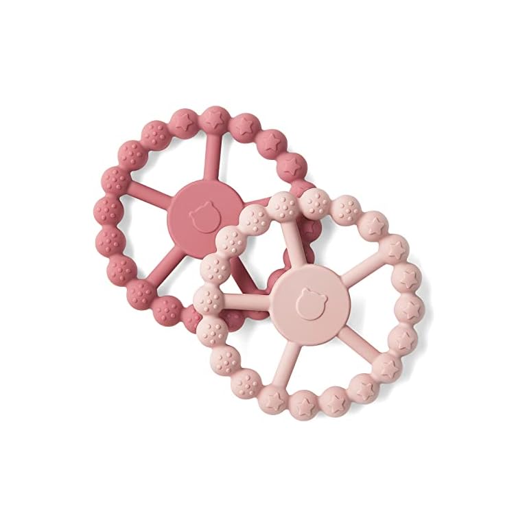 Samigo Ring Baby Teether Toys, Silicone Teething Ring Toys for Babies 0-6 6-12 Months, Baby Teethers 0-3 Months, Infant Teething Relief, Baby Girl Essentials – 2 Pack