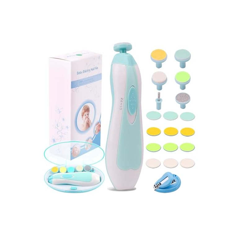 Baby Nail Trimmer Electric, FANSIDI Baby Nail Clippers Safe Baby Nail File Kit with Extra 12 Replacement Pads, Trim Polish Grooming Kit for Newborn Infant Toddler or Adults Toes Fingernails Care, Blue