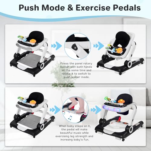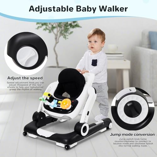4 Adjustable Heights: The baby walkers for boys has 4 adjustable height to switch, walker for baby is suitable for tall and short baby and grow with babies. The breathable seat cover will give baby a comfortable experience. The walker baby is perfect for baby boy and girl