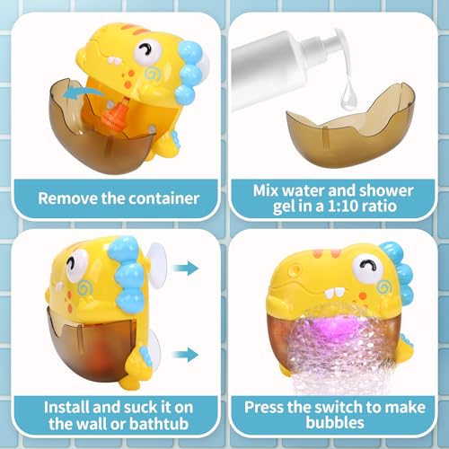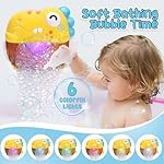 Enhanced Waterproof & Strong Suction Design: The bubble maker bath toy boasts an upgraded IP6 waterproof level with a soft silicone seal to prevent any water leakage, providing durability and reliability. Strong suction cups firmly attach the toy to the bathtub, offering a worry-free and enjoyable bath time experience for your baby.