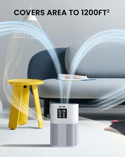 Efficient Purification & LED Touch Panel: Desk room air purifier can purify the air 5 times per hour in a room of 1200 sq.ft / 111.6mf㎡, effectively improving indoor air quality. Air purifiers for home large room has a high-resolution LED touch panel and can display PM2.5, gear, and timer. Modern design fits in any space from small to large rooms, bedrooms, living rooms, offices, nurseries, kitchens, and basements.