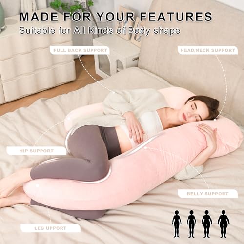Maternity Body Pillow U-Shaped for Pregnancy – Full Body Support Pillow for Side Sleepers, Relieves Back Pain, Leg & Belly Support, Comfort for Sleeping – Removable Cover (Pink)