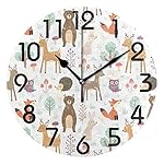 Naanle Lovely Cute Cartoon Forest Animal Deer Fox Bear Owl Pattern Round Wall Clock Decorative, 9.5 Inch Battery Operated Quartz Analog Quiet Desk Clock for Home,Office,School